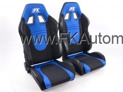 Sportovní sedačky Racecar, černo-modré, látkové, bez homologace, universální, sklopná a polohovací. Cena je za pár.
