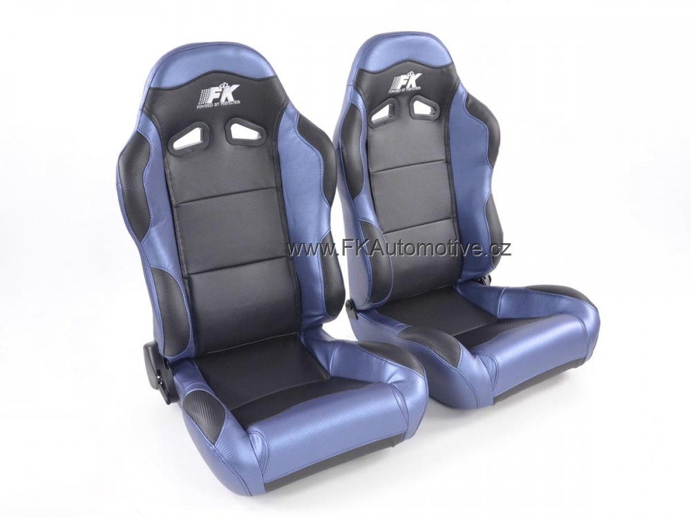 Sportovní sedačky Spacelook, levá + pravá strana, modro-černé barva, sklopná-polohovací, polokůže, karbonový vzhled, velmi dobře omyvatelná. Cena je za pár. Délka konzole 400mm.