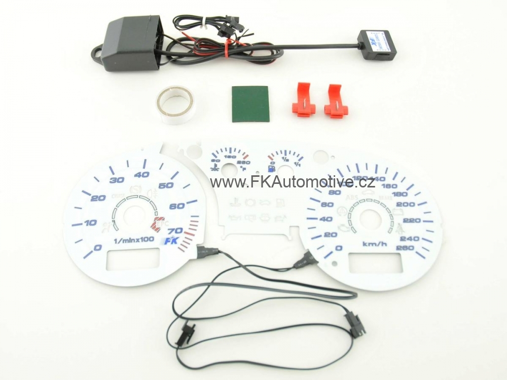 Plasmové podsvícení budíků VW Passat 3BG, r.v. 00-04, otáček 7000 a 0-260km/h., teplota vody ve F. Barva bílá, podsvícení přepínací, modré a zelené. Cena je za sadu. Nové, zabalené.