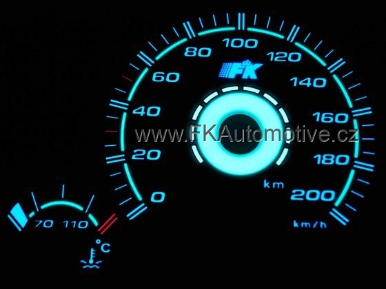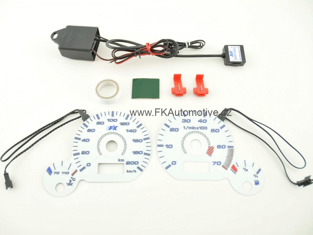 Plasmové podsvícení budíků VW Passat 3BG, r.v. 00-04, otáček 7000 a 0-200km/h. Barva bílá, podsvícení přepínací, podsvícení modré a zelená. Cena je za sadu