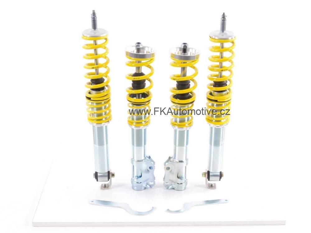 Sportovní výškově stavitelný podvozek AK Street na VW Polo 6N, r.v. 08/94-10/99. Snížení 35-65mm. Materiál: ocel. Homologace TUV. Cena je za kompletní sadu na daný vůz