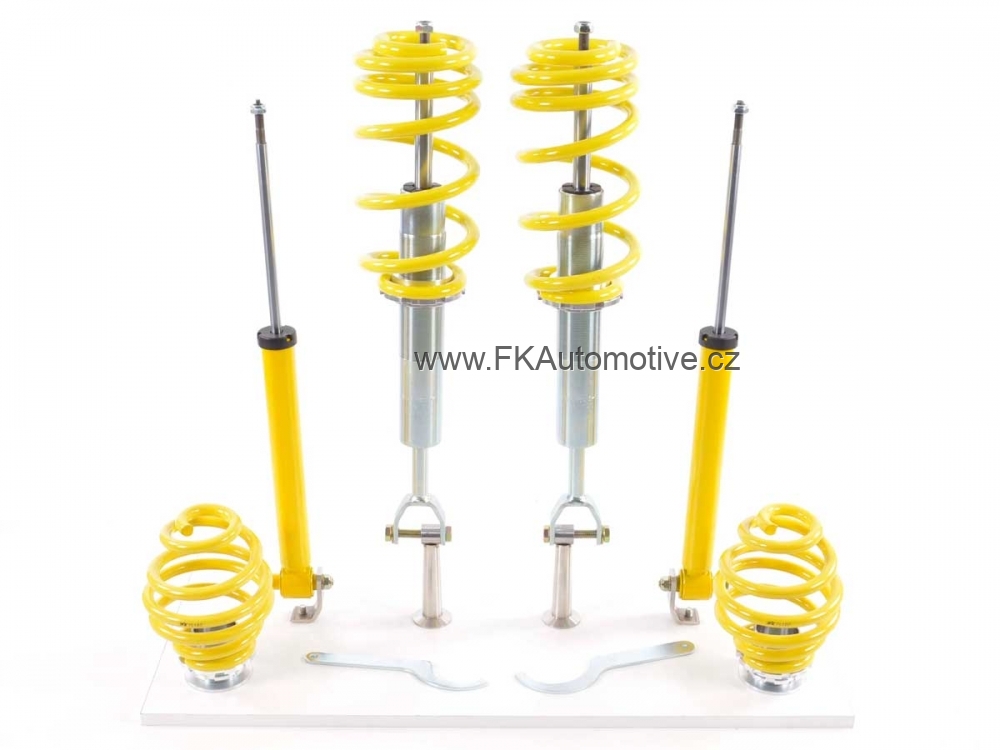 Sportovní výškově stavitelný podvozek AK Street na VW Passat 3B, limousine r.v.11/96-2/00. Snížení: 35-70mm. Materiál: ocel. Homologace TUV. Cena je za kompletní sadu na daný vůz