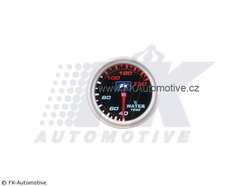 Budík teploty vody, tmavý podklad, neprůhledné sklo, průměr 52mm, podsvícený.