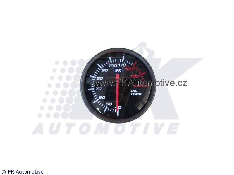 Budík teploty oleje, tmavý podklad, průhledné sklo, průměr 60mm, podsvícený.