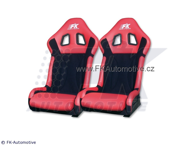 Sportovní sedačky pravá + levá, červeno-černá barva, pevná-nesklopná, kombinace látky a kůže. Cena je za pár. Délka konzole 340-365mm.