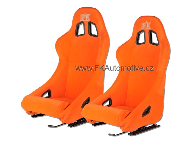 Sportovní sedačky pravá + levá, oranžová barva, pevná-nesklopná, látková. Cena je za pár. Včetně uni pojezdu nebo držáku.