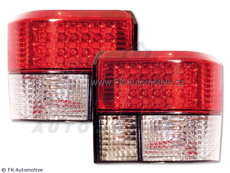 Zadní tuningová světla LED na VW Bus T4 r.v. 91-04, červeno-čiré pozadí, homologace E. Cena je za pár.