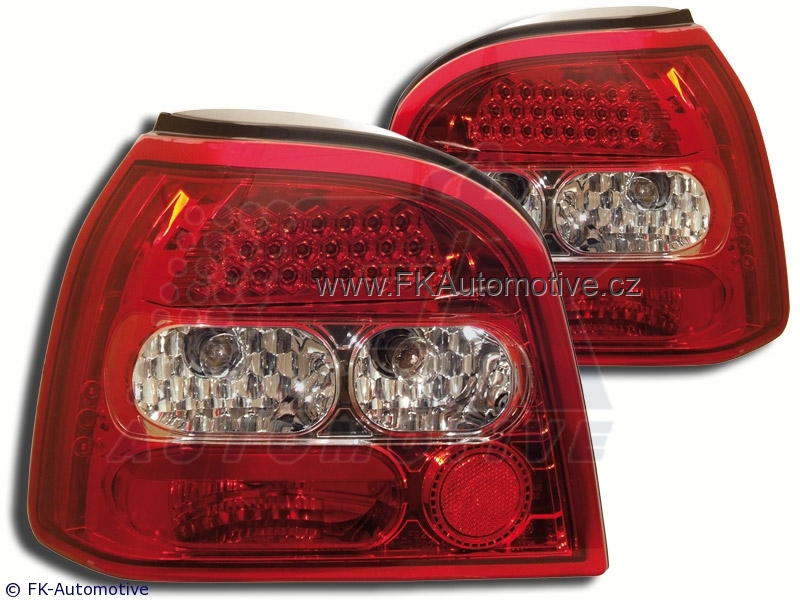 Zadní tuningová světla LED na VW Golf 3 r.v. 91-97, červené pozadí, homologace E. Cena je za pár.