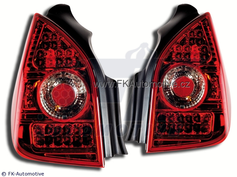 Zadní tuningová světla LED na Citroen C2 typ JHFX/JKFV/J8HX/JNFU r.v. 03-, červené pozadí, homologace E. Cena je za pár.