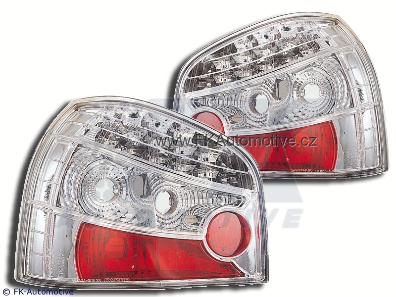 Zadní tuningová světla LED na Audi A3 typ 8L r.v. 96-02, chromové pozadí, homologace E. Cena je za pár.