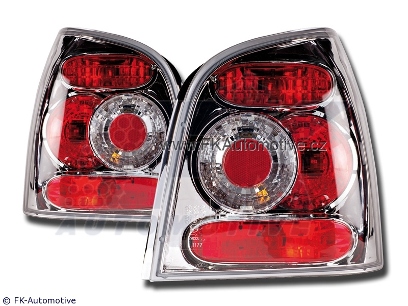 Zadní tuningová světla na VW Polo 9N r.v. 01-, chromové pozadí, homologace E. Cena je za pár.