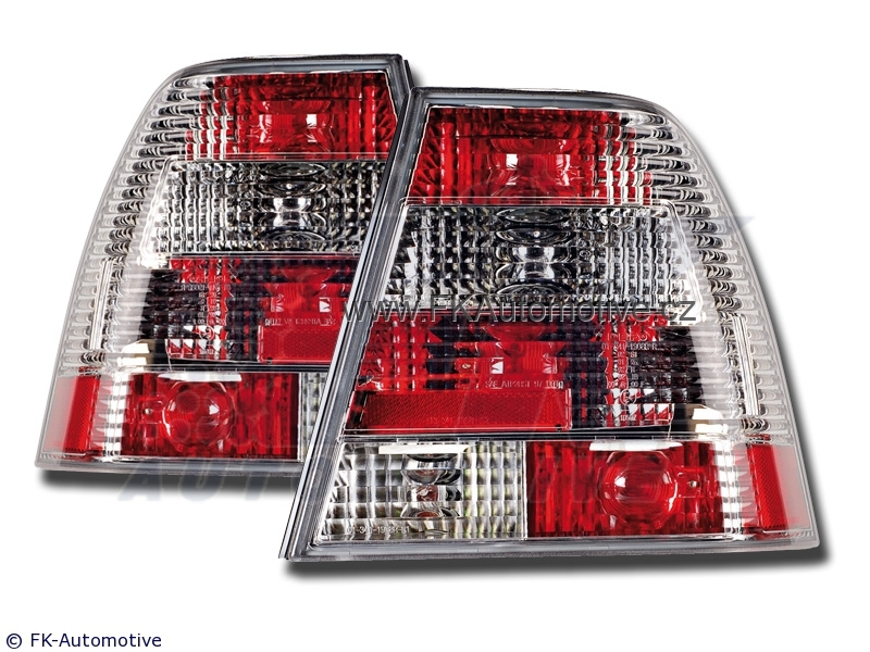 Zadní tuningová světla na VW Bora r.v. 98-04, krystalově bílé pozadí, homologace E. Cena je za pár.