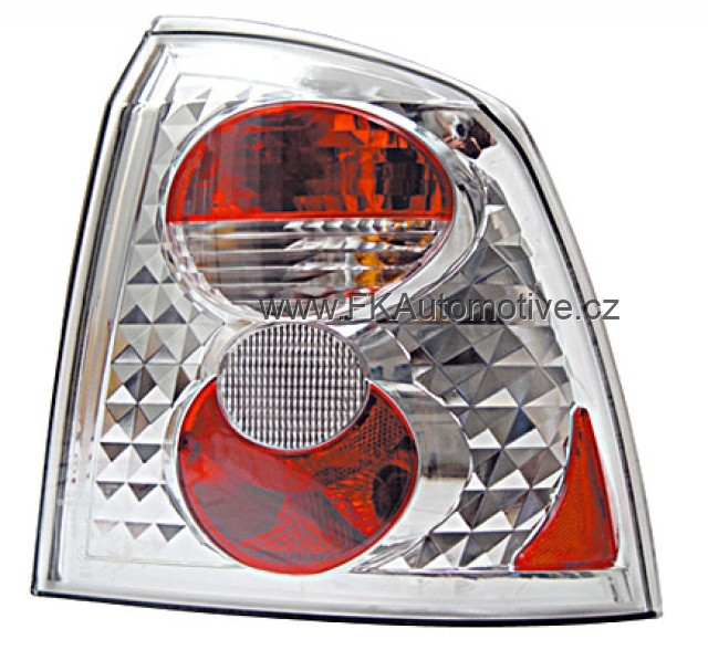Zadní tuningová světla na Opel Astra G typ 3/5dv. r.v. 98-04, chromové pozadí, homologace E. Cena je za pár.