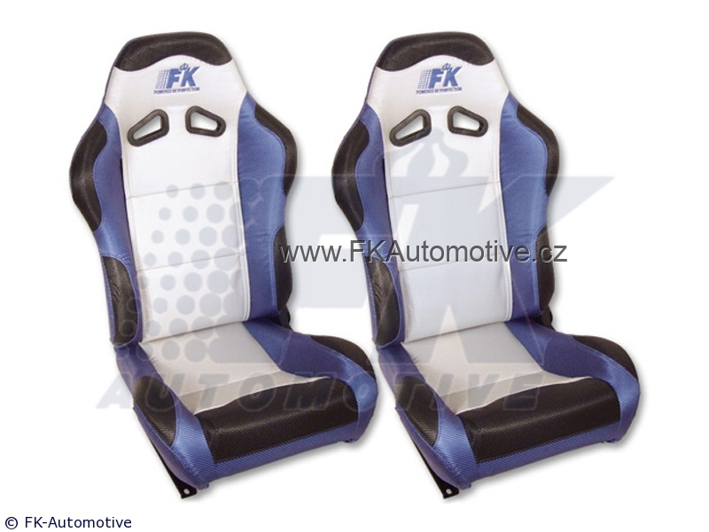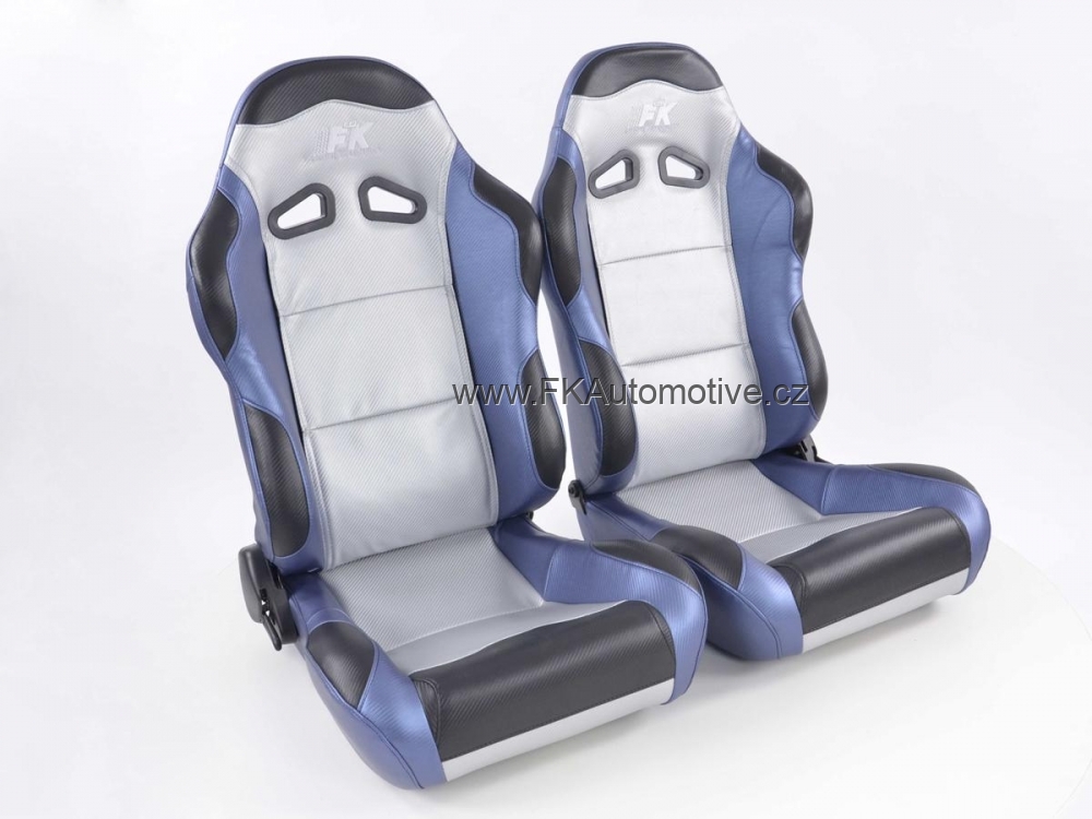 Sportovní sedačky Spacelook levá + pravá strana, stříbrno-modrá barva, sklopná-polohovací, kožená-polokůže. Cena je za pár. Délka konzole 400mm.
