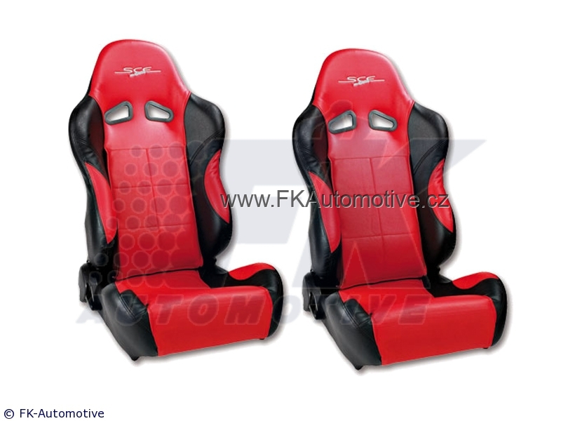 Sportovní sedačky levá + pravá strana, červeno-černá barva, sklopná-polohovací, kožená-polokůže. Cena je za pár. Délka konzole 400mm.