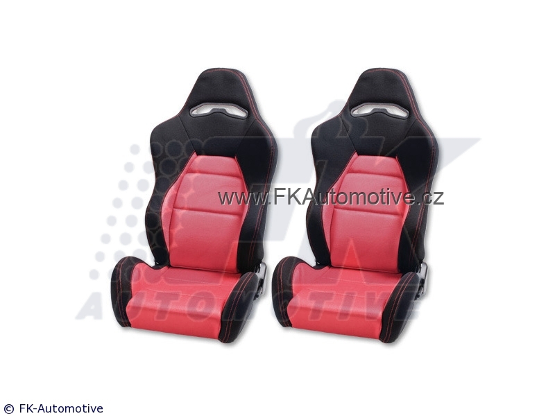 Sportovní sedačky levá + pravá strana, červeno-černá barva, sklopná-polohovací, látková. Cena je za pár. Délka konzole 345mm.