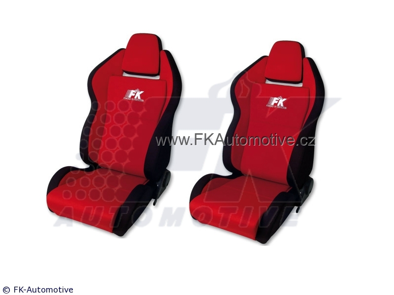 Sportovní sedačky levá + pravá strana, červeno-černá barva, sklopná-polohovací, látková. Cena je za pár. Délka konzole 350mm.