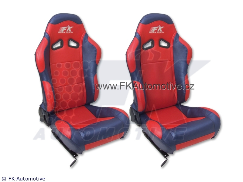 Sportovní sedačky Spacelook, levá + pravá strana, červeno-modrá barva, sklopná-polohovací, polokůže, karbonový vzhled, velmi dobře omyvatelná. Cena je za pár. Délka konzole 400mm.