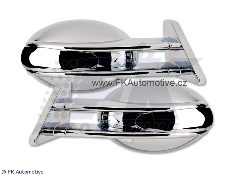 Sportovní zrcátka, manuální ovládání, bez blinkru, z PVC, chromové, homologace E, zrcátka jsou universální, k danému typu vozu nutné zakoupit adaptér. Cena je za pár.