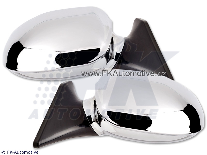 Sportovní zrcátka, manuální ovládání, bez blinkru, z PVC, chromové, homologace E, zrcátka jsou universální, k danému typu vozu nutné zakoupit adaptér. Cena je za pár.