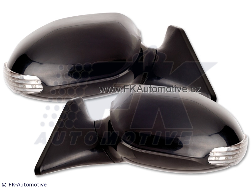 Sportovní zrcátka, elektrické ovládání s 3 dráty, s LED blinkrem, z PVC, černé, homologace E, zrcátka jsou universální, k danému typu vozu nutné zakoupit adaptér. Cena je za pár.