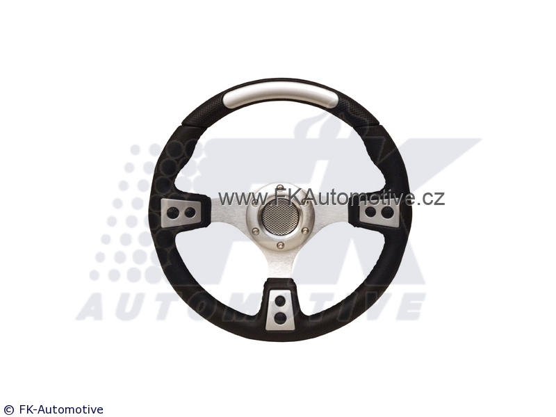 Sportovní volant, pravá kůže, černo-stříbrný design, průměr 320mm.