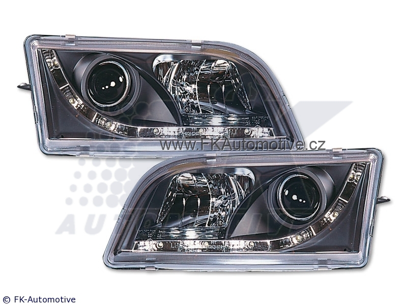 Přední světla s LED pruhem denního svícení, styl Devil Eyes na Volvo S40/V40 r.v. 96-04, černé pozadí. Cena je za pár.
