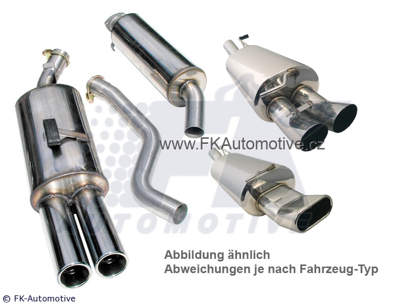 Sportovní výfukový systém na BMW E36, motor 6válec 328i r.v. 90-00. Nerezový kvalitní materiál, leštěné, průchozí, super zvuk. Poslední a předposlední díl + připojovací trubky. Včetně upínacích spon. Koncovka 2x76mm DMT. Cena je za sadu.