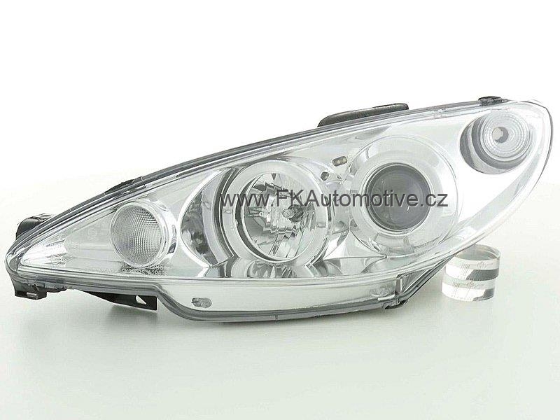 Přední design světla na Peugeot 206, r.v. 98-03, chromové pozadí. Homologace. Cena je za pár.