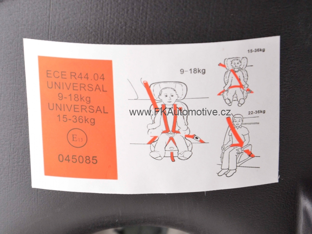 Dětská autosedačka, kategorie: I + II + III (1 až 12/9 až 36 kg), oranžová barva, splňuje normu ECE R44/04, rozměr: 430x470x710mm, materiál plast/polyester, včetně 3bod pásů, vložky pro menší děti. Lze použít pro děti 9-18kg za použití 3bod. pásů, nebo pro děti 15-36kg za použití pásu z vozidla nebo po demontáži horní části jako samostatný podsedák.