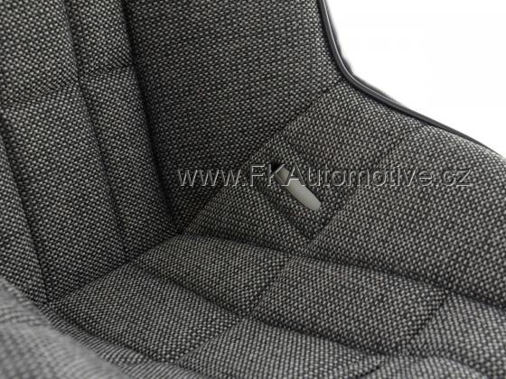 Sportovní mini sedadlo pro děti, závodní vzhled, černo-šedá barva, skořepinová, sportovní sezení, látková.