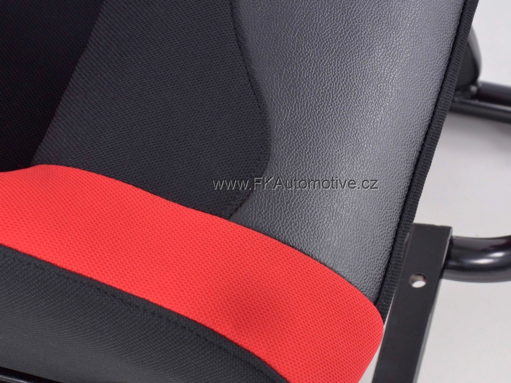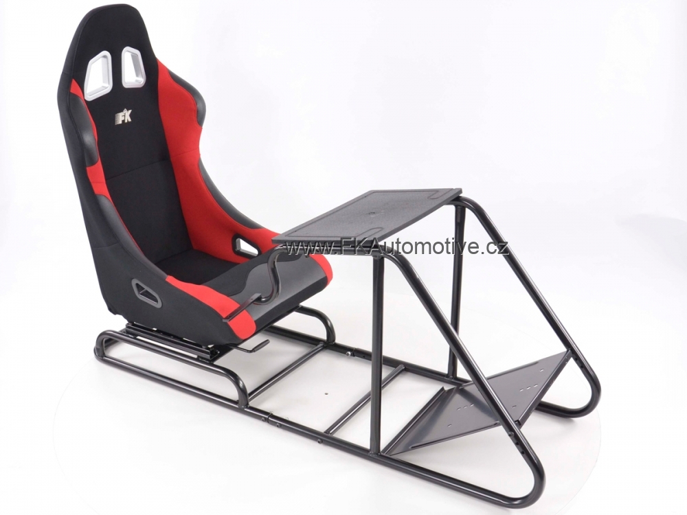 Závodní simulátor (sedačka) pro herní konzoli, set sedačky + rámu na uložení konzole, volantu, pc atd. Barva černo-červená, látková sedačka, lakovaný černý rám.