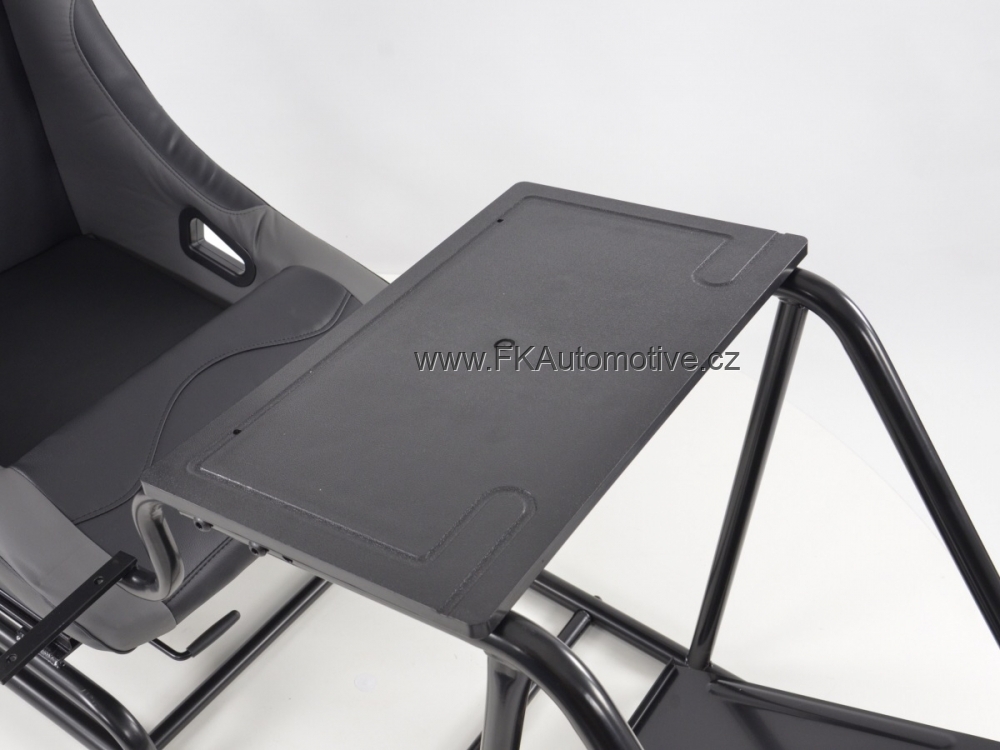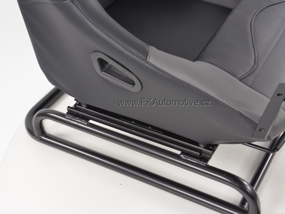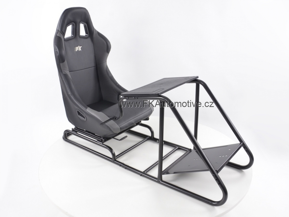 Závodní simulátor (sedačka) pro herní konzoli, set sedačky + rámu na uložení konzole, volantu, pc atd. Barva černo-šedá, polokožená sedačka, lakovaný černý rám.