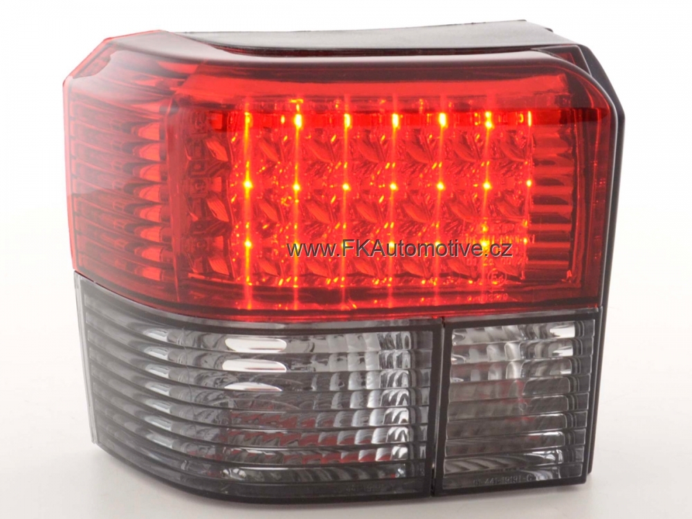 Zadní tuningová světla LED na VW Bus T4 r.v. 91-04, červeno-tmavé pozadí, homologace E. Cena je za pár.