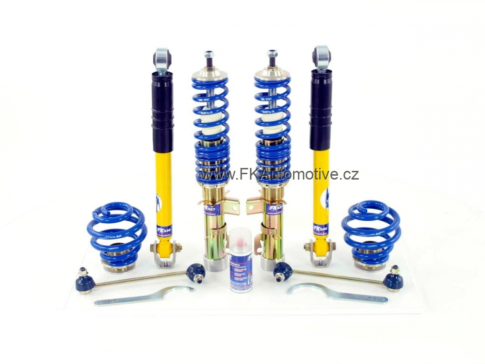 Sportovní podvozek, výškově a tuhostně stavitelný. Na vůz Škoda Octavia typ 1U r.v. 6/98- rnCertifikát TÜV. Snížení 35-65mm, velmi kvalitní materiál, pozink, závodní pružiny. Cena je za komplet sadu na daný vůz.