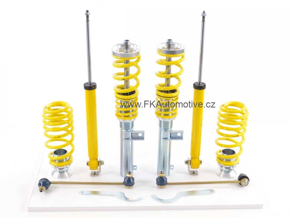 Sportovní výškově stavitelný podvozek AK Street na VW Golf plus typ 1KP, od r.v. 05/2003 50mm fed. Snížení 35-65mm. Materiál: ocel. Homologace TUV. Cena je za kompletní sadu na daný vůz
