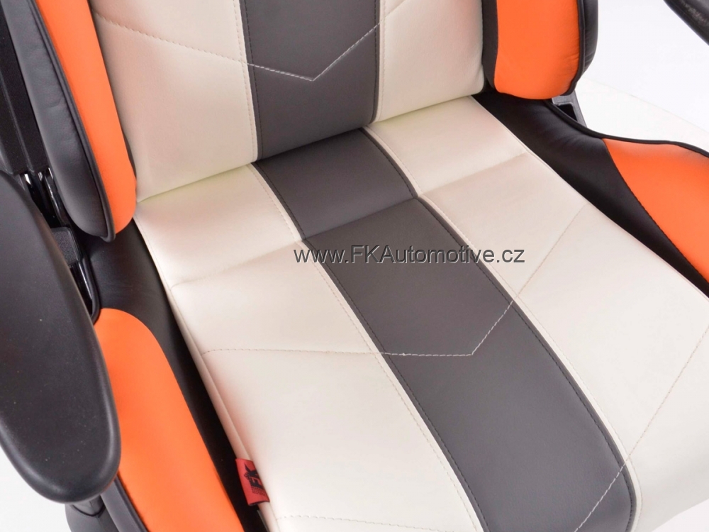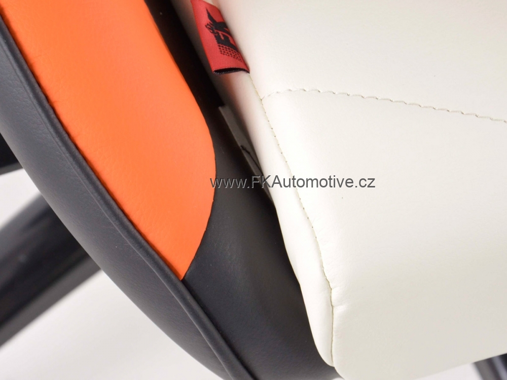 Sportovní kancelářská židle s opěrkami pro závodní pocit v kanceláři, materiál polokůže, nastavitelná výška opěradla, barva šedá, bílá + oranžová, včetně područek. Max. nosnost 150kg