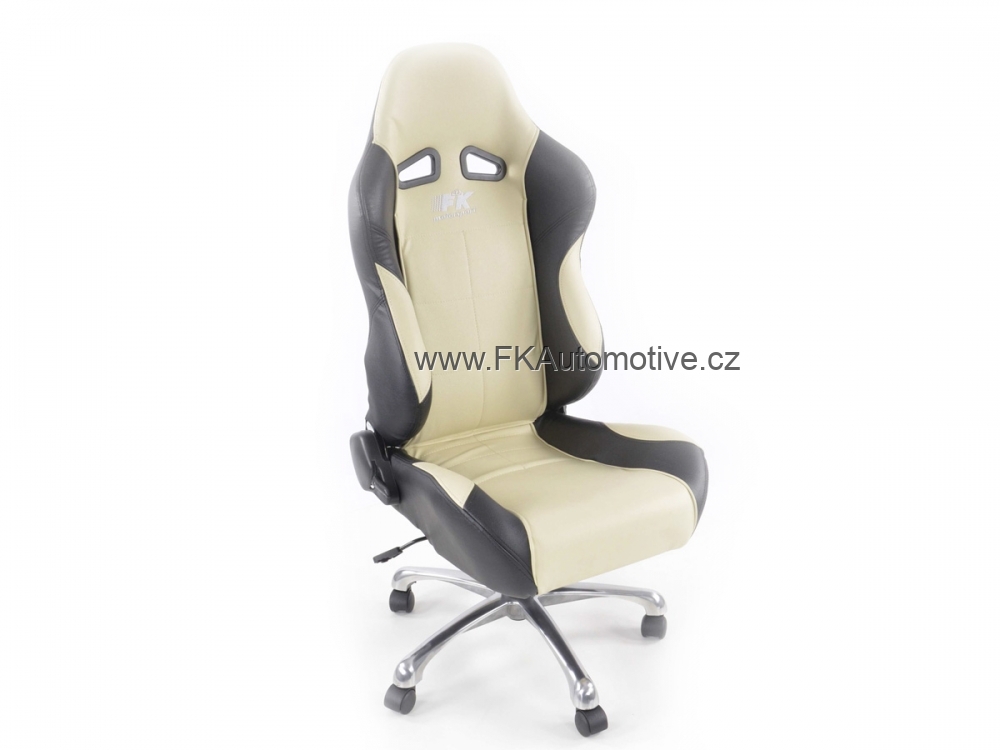 Sportovní kancelářská židle pro závodní pocit v kanceláři, materiál polokůže, nastavitelná výška opěradla, barva černá+béžová, včetně područek. Max. nosnost 150kg, chromovaná základna.