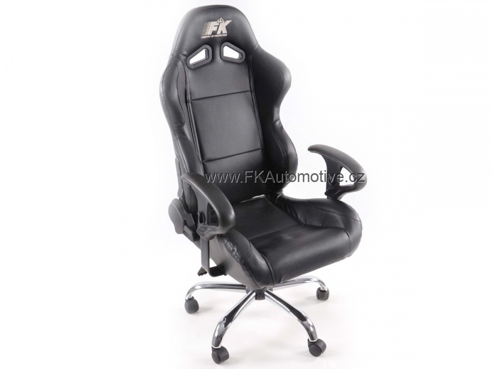 Sportovní kancelářská židle s opěrkami pro závodní pocit v kanceláři, materiál polokůže, nastavitelná výška opěradla, barva černá, včetně područek. Max. nosnost 150kg, chromovaná základna.