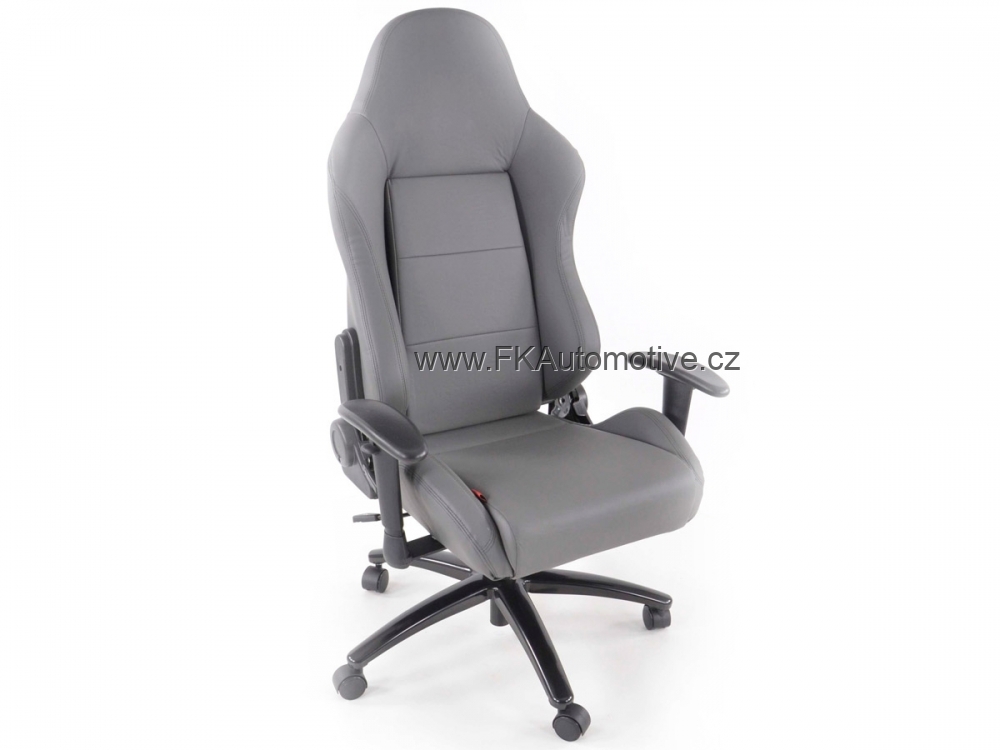 Sportovní kancelářská židle s opěrkami pro závodní pocit v kanceláři, otočná, materiál polokůže, nastavitelná výška opěradla, barva šedá, včetně područek. Max. nosnost 150kg, chromovaná základna.