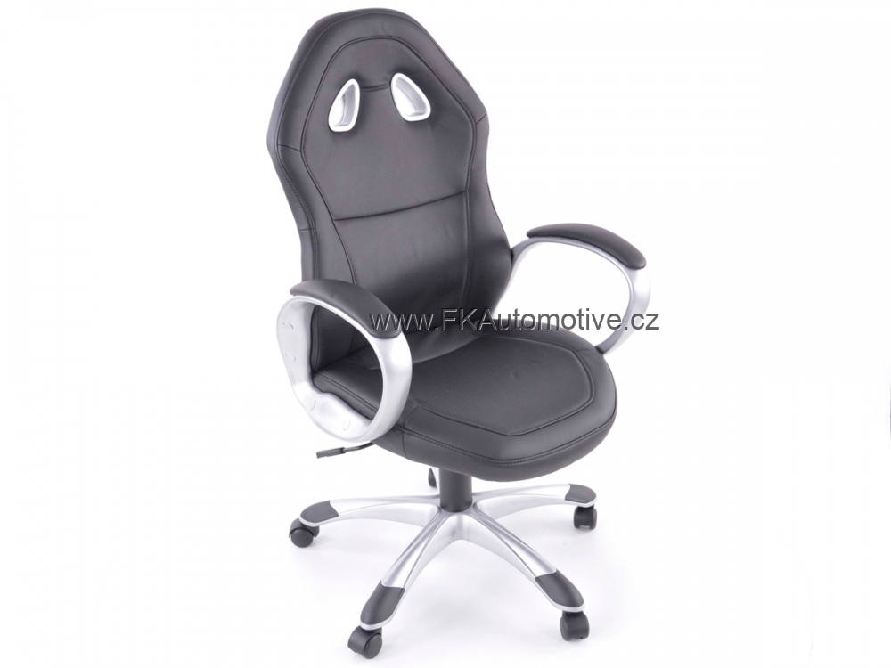 Sportovní kancelářská židle s opěrkami pro závodní pocit v kanceláři, otočná, materiál polokůže + pvc, nastavitelná výška opěradla, barva černá, včetně područek. Max. nosnost 110kg, chromovaná základna.