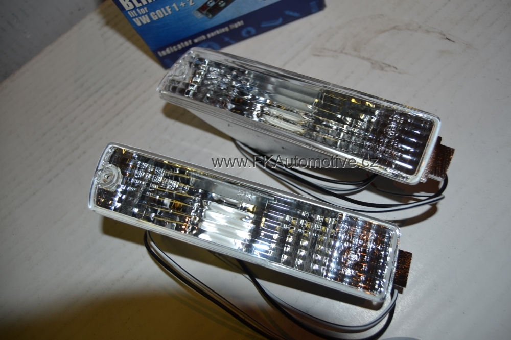 Blinkry do předního nárazníku VW Golf 2 /Jetta, r.v. 83-91, krystalově chromové. Cena je za pár.