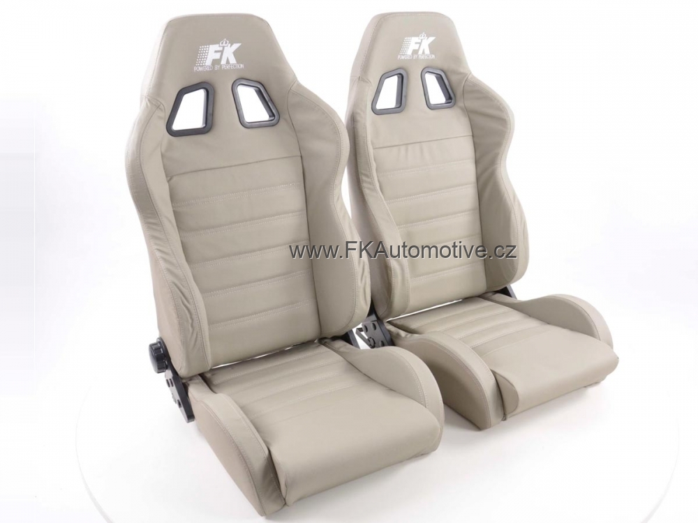 Sportovní sedačky Race 4, šedé, polokůže, bez homologace, délka konzole 350mm, universální, sklopná a polohovací. Cena je za pár.