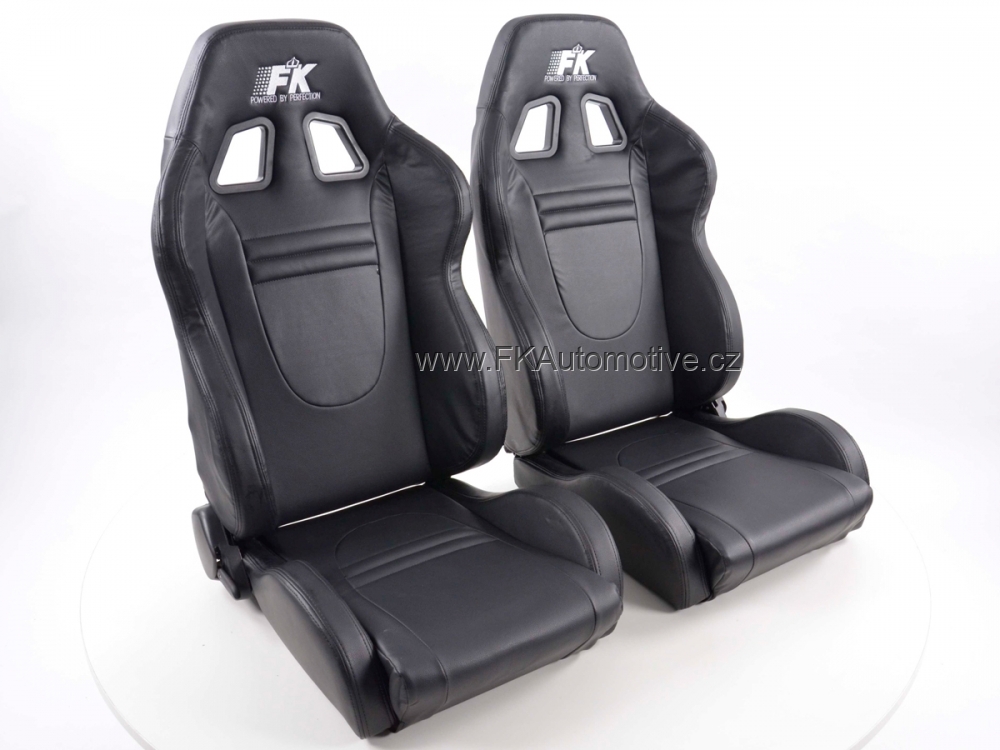 Sportovní sedačky Racecar, černé, polokožené, bez homologace, délka konzole 350mm, universální, sklopná a polohovací. Cena je za pár.