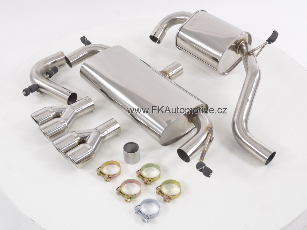 Sportovní výfukový systém na VW Golf 5/6 od r.v. 04-, na motor 1,4TSI / 1,4TSI GT / 2,0TFSI / GTI / GTI Edition 30, nerezová ocel, silný zvuk a sportovní vzhled, přesně padnoucí, koncovka výfuku 4x76mm L+P. Cena za komplet sadu.