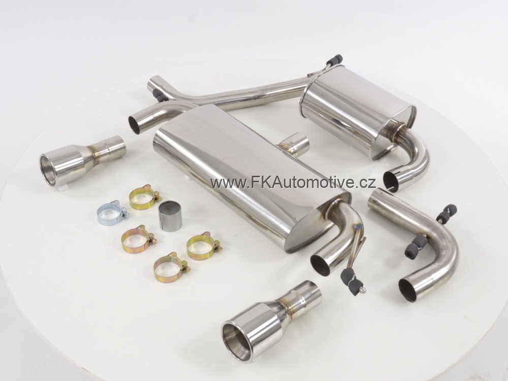 Sportovní výfukový systém na VW Golf 5/6 od r.v. 05-, na motor 1,4TSI/1,4TSI GT/2,0TFSI/GTI/GTI Edition 30, nerezová ocel, silný zvuk a sportovní vzhled, přesně padnoucí, koncovka výfuku 2x100mm L+P. Cena za komplet sadu.