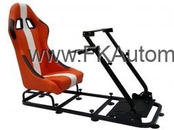 Závodní simulátor (sedačka) pro herní konzoli, set sedačky + rámu na uložení konzole, volantu, pc atd. Barva oranžovo-bílá, látková sedačka, lakovaný černý rám. Délka 90cm Šířka 57cm Výška 64cm