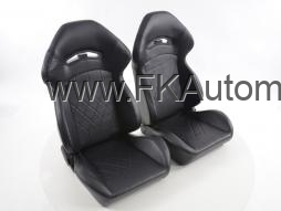 Sportovní sedačky, levá + pravá strana, černá barva, sklopná-polohovací, polokožená. Cena je za pár. Uni konzole a pojezd