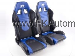 Sportovní sedačky Racecar, modro-černé, polokůže, bez homologace, délka konzole 350mm, universální, sklopná a polohovací. Cena je za pár.