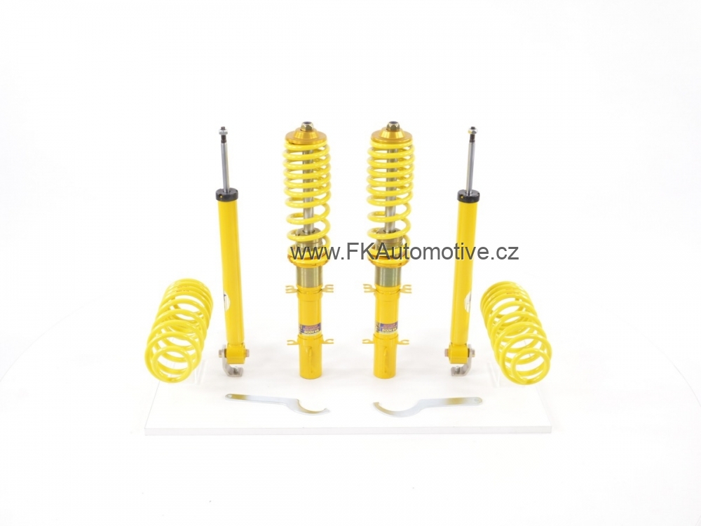 Sportovní výškově stavitelný podvozek AK Street Audi A3 typ 8L, r.v. 08/96-, snížení přední 20-50mm, zadní pevné snížení 60mm. Materiál: ocel. Cena je za kompletní sadu na daný vůz.